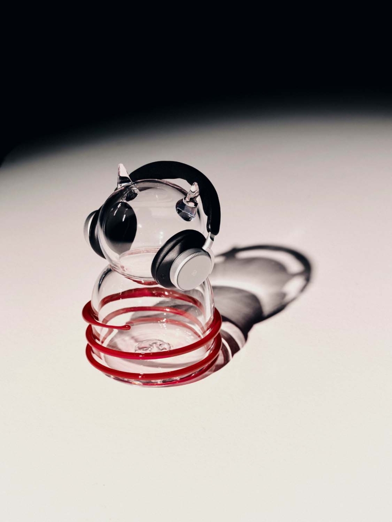 V tem okolju poslušalski salon Beoplay H100, ki ga poudarjajo značilni stekleni elementi studia Home in Heven, vabi obiskovalce k poglobljenemu poslušanju.