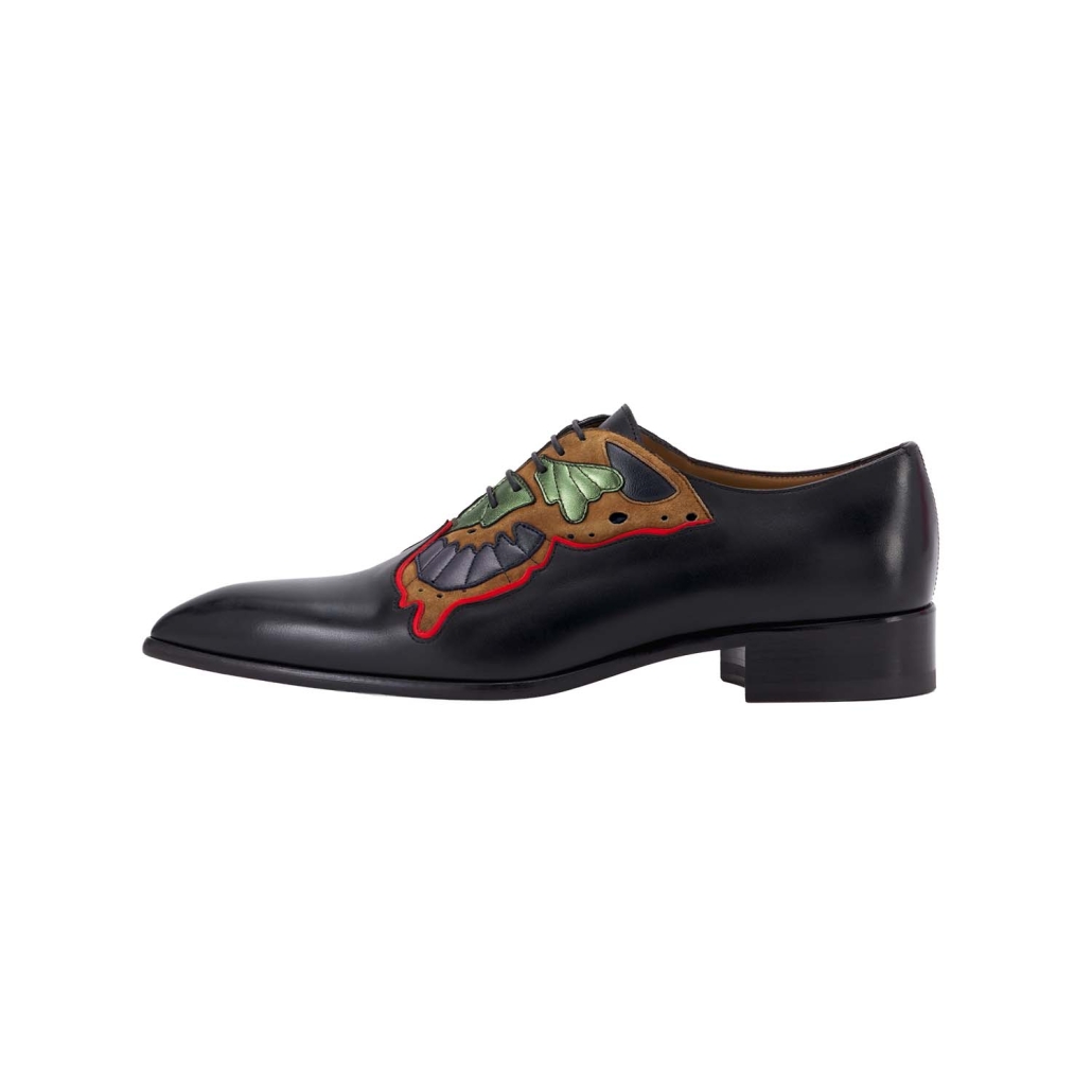 Farfaman prav tako predstavlja legendarno obrt hiše Christian Louboutin z ročno izrezanimi in prišitimi usnjenimi metuljčki na tradicionalnih čevljih z vezalkami, v igrivi posodobitvi enih oblikovalčevih osebno najljubših arhivskih modelov. Za večerne priložnosti je na voljo Farfarock, izdaja iz lakiranega usnja z ročno vdelanimi okrasnimi kamni.