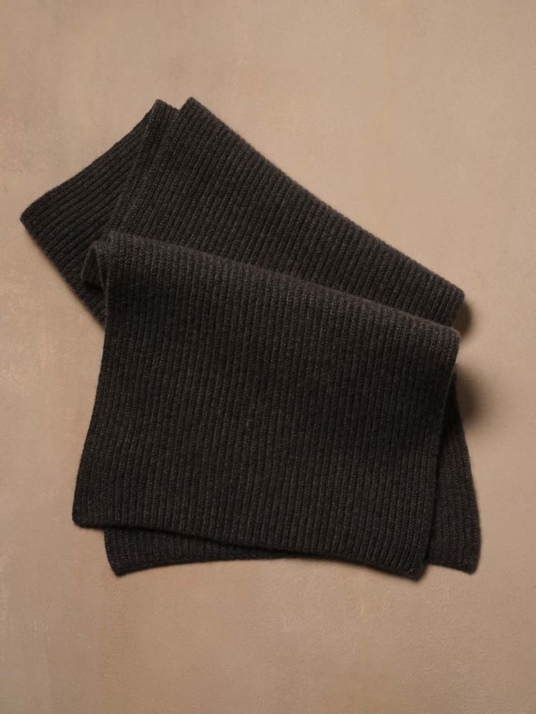 Črna surova jeans jakna, navdihnjena z delovnimi oblačili, ima prefinjen ovratnik iz rjave bombažne vrvice in razkošno podlogo iz mešanice kašmirja in volne – popolna kot lahka možnost za prehodno oblačenje.