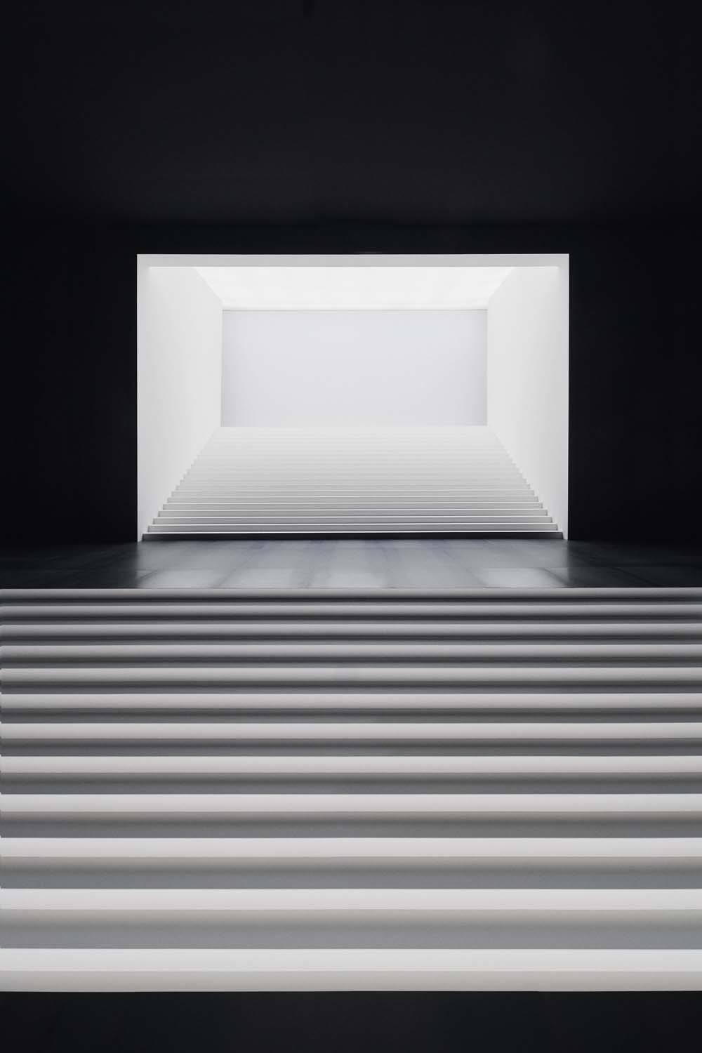 Zunanjost prizorišča modne revije Christian Dior jesen/zima 2025–2026 v Parizu, z moderno geometrično stavbo in razgledom na Eifflov stolp. Exterior of the Christian Dior Fall/Winter 2025–2026 fashion show venue in Paris, featuring a modern geometric structure and view of the Eiffel Tower.