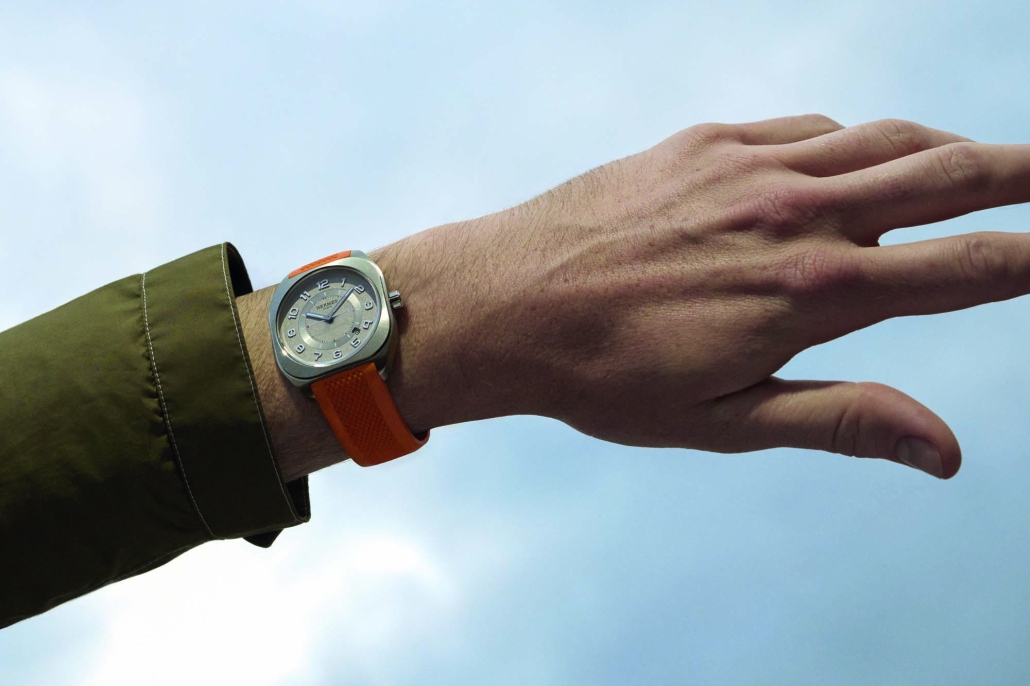 Geometrijski in terenski, ta urarski predmet s športnim duhom se brezhibno ujema z moškim vesoljem Hermèsa. Natančnost vsakega reza poudarja čutnost materialov.
