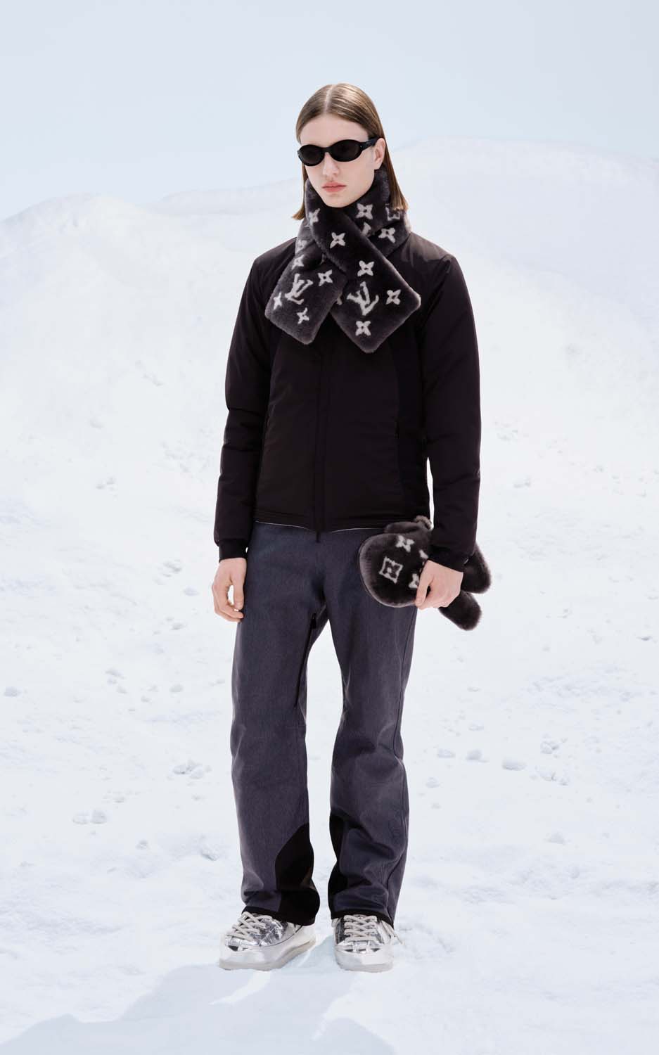 Za moško smučarsko kolekcijo Louis Vuitton 2026 Pharrell Williams nadaljuje svojo vizijo prepletanja smučarskih oblačil z vsakodnevno garderobo.