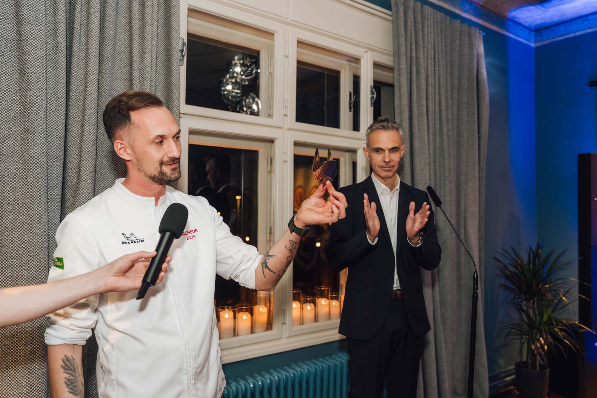 DAVID: Kar je dobro. Kaj je v tvojem življenju najbolj inspirativno? Nekaj, kar potem preliješ v kuharske recepte. Ampak da ni mogoče spomin, da ni iz Slovenije, da je mogoče nekaj, ko greš, ne vem, v Pariz ali v London ali pa v New York ali pa kamorkoli po svetu in te prevzame. In tam je tako dobro, da si potem prav rečeš: saj to mi je bilo tako všeč, nekaj takega bi prenesel. Ali je to mogoče nekaj iz umetnosti? Da greš eno razstavo pogledat pa nekaj elementov vidiš in si rečeš: wauuuuu. Lahko je tudi kaj takega, mogoče z nekega čisto drugega področja, ne kuharskega.