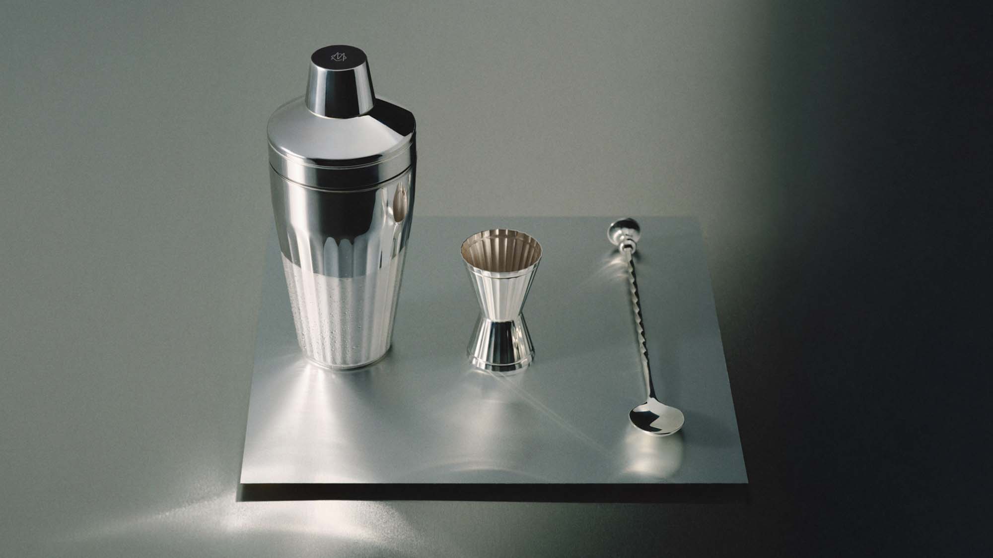 Omejena izdaja srebrnega koktajl etuija RIMOWA x Robbe & Berking z ročno izdelanimi srebrnimi pripomočki v aluminijastem etuiju