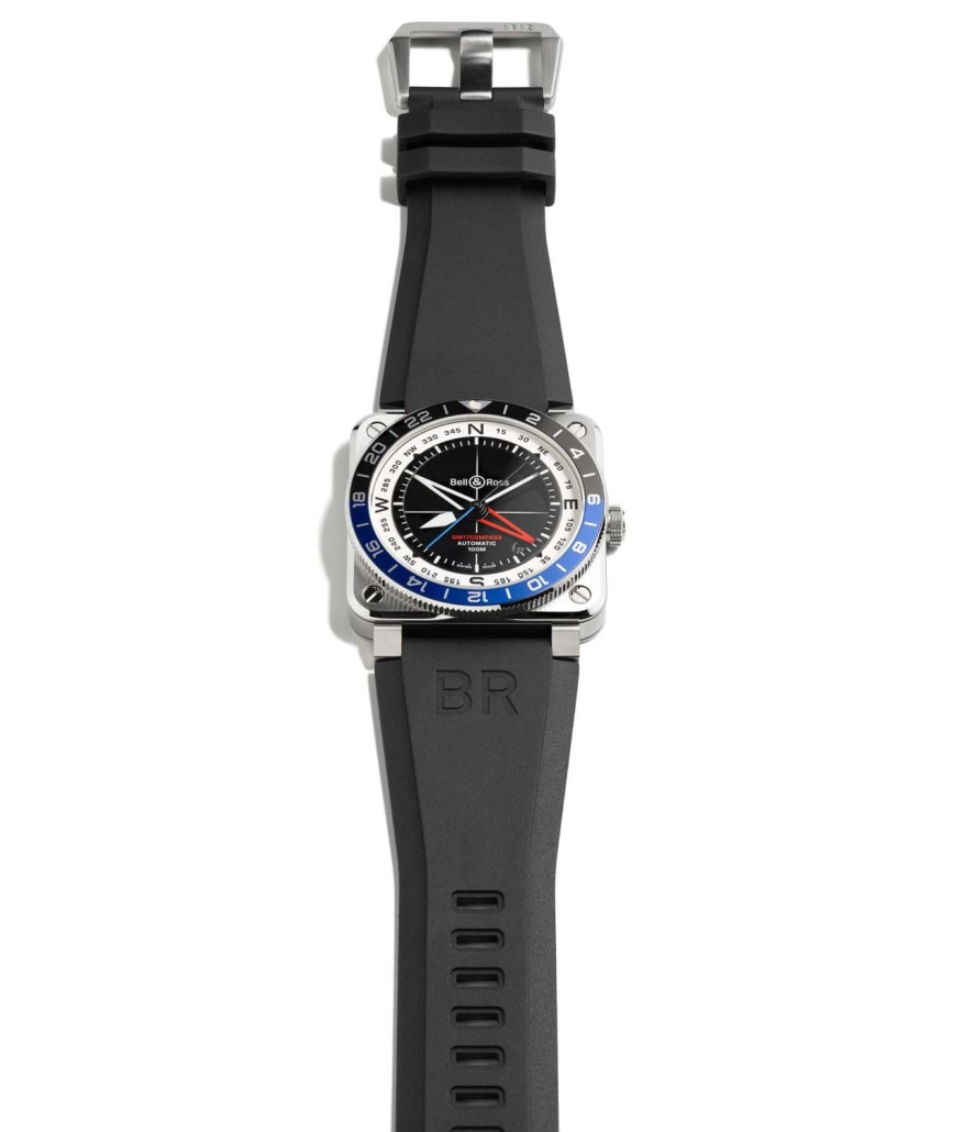 Novi BR-03 GMT, zasnovan kot pravi potovalni instrument, sledi uspešnemu načelu dvojnega časovnega pasu, ki ga je hiša Bell & Ross prvič predstavila leta 2007 z uro BR-03 51 GMT Titanium. To funkcijo zelo cenijo popotniki, saj omogoča takojšnje branje dveh časovnih pasov hkrati.
