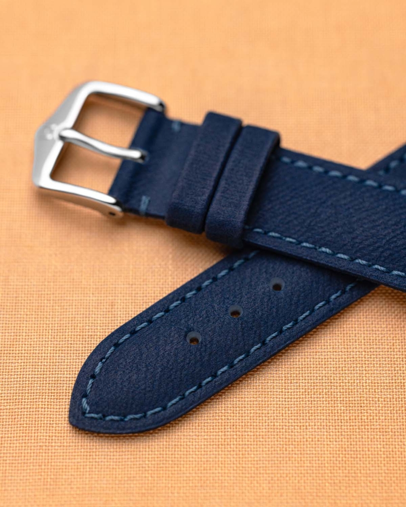 NIKOLAUS HIRSCH: Ja, res sem ga že ustvaril. To je pašček, ki smo ga ustvarili pred časom. Imenuje se Bologna. Je raven ali skoraj raven, ker imamo v paščku ure majhno blazinico v taupe barvi. Na vrhu ima zelo gladko teksturo. Nekaj, kar boste našli pri proizvajalcih ali blagovnih znamkah vrhunskih torbic. In to se res lepo poda k, rekel bi, 95 % uram, ker ga lahko nadenete na zlato uro, lahko ga nadenete na grafični zaplet znamke Patek ali pa ga nadenete na potapljaško uro, lahko ga nadenete na Rolex in še vedno daje uri ali uporabniku malo sproščenosti, a ohranja določeno eleganco. Torej, če bi ga nadeli na zlato uro, ima to eleganco, ima ta razkošen občutek in se poda k vsemu, kar ste rekli.